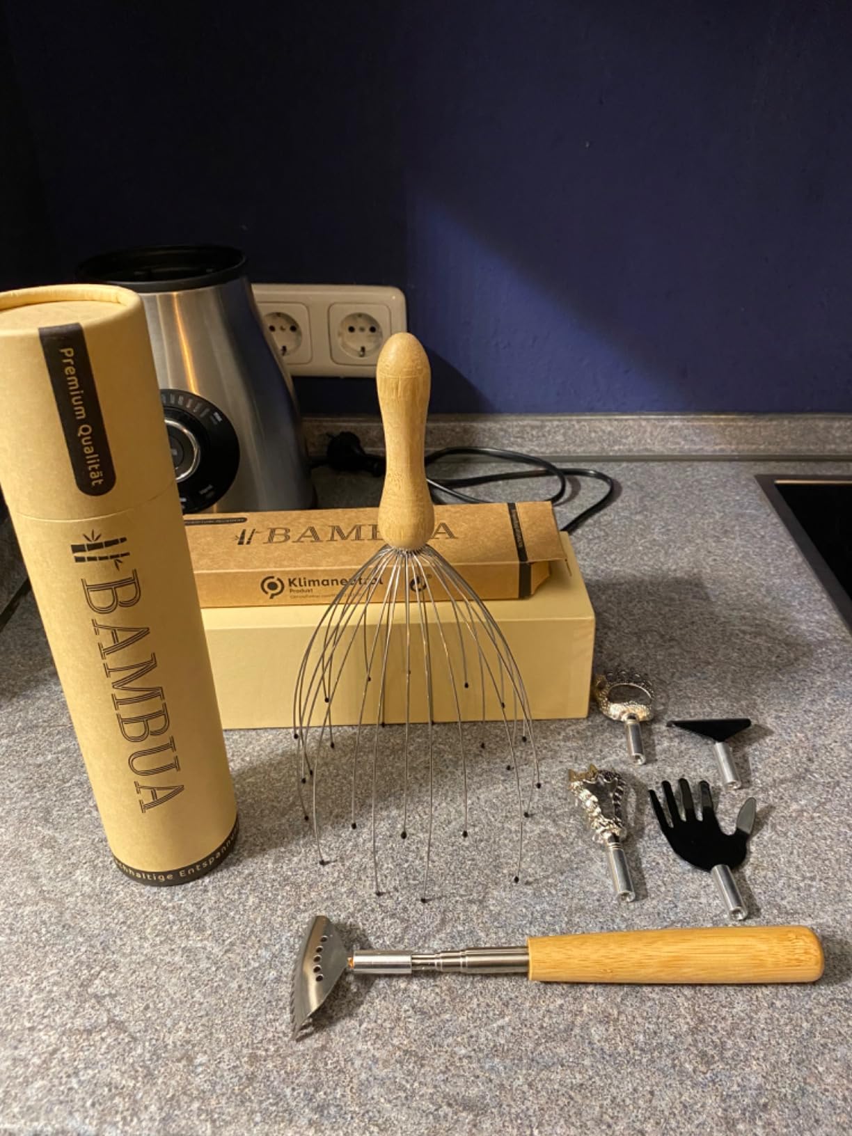 Un accesoriu atât de simplu, dar atât de util! Cu 5 capete diferite, acest set din bambus și oțel inoxidabil îți oferă răspunsul perfect pentru orice nevoie de relaxare. Cu o lungime generoasă de 68 cm, este un adevărat "asistent personal" pentru momentele când ai nevoie de un pic de ajutor.