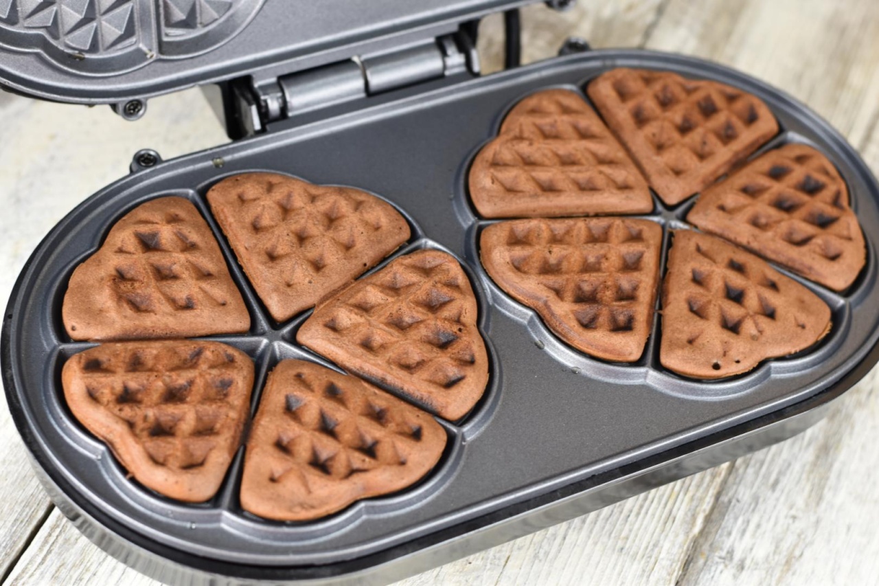 Aparat de facut gofre Heinner HWF-1000CR 1000W, Placi cu invelis antiaderent, Negru/aramiu