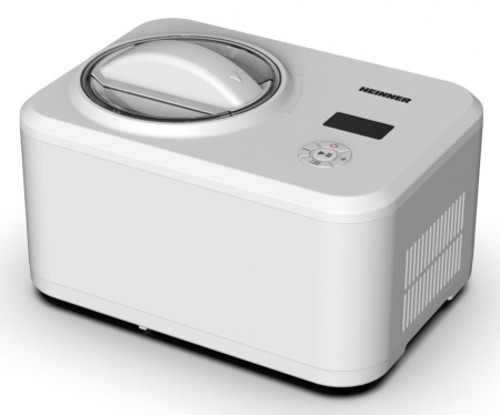 Aparat de inghetata Heinner Glace HICM-150WHYG, Putere 150W, Capacitate bol 1.5L, Compresor incorporat, Display LED, Timer, Alb