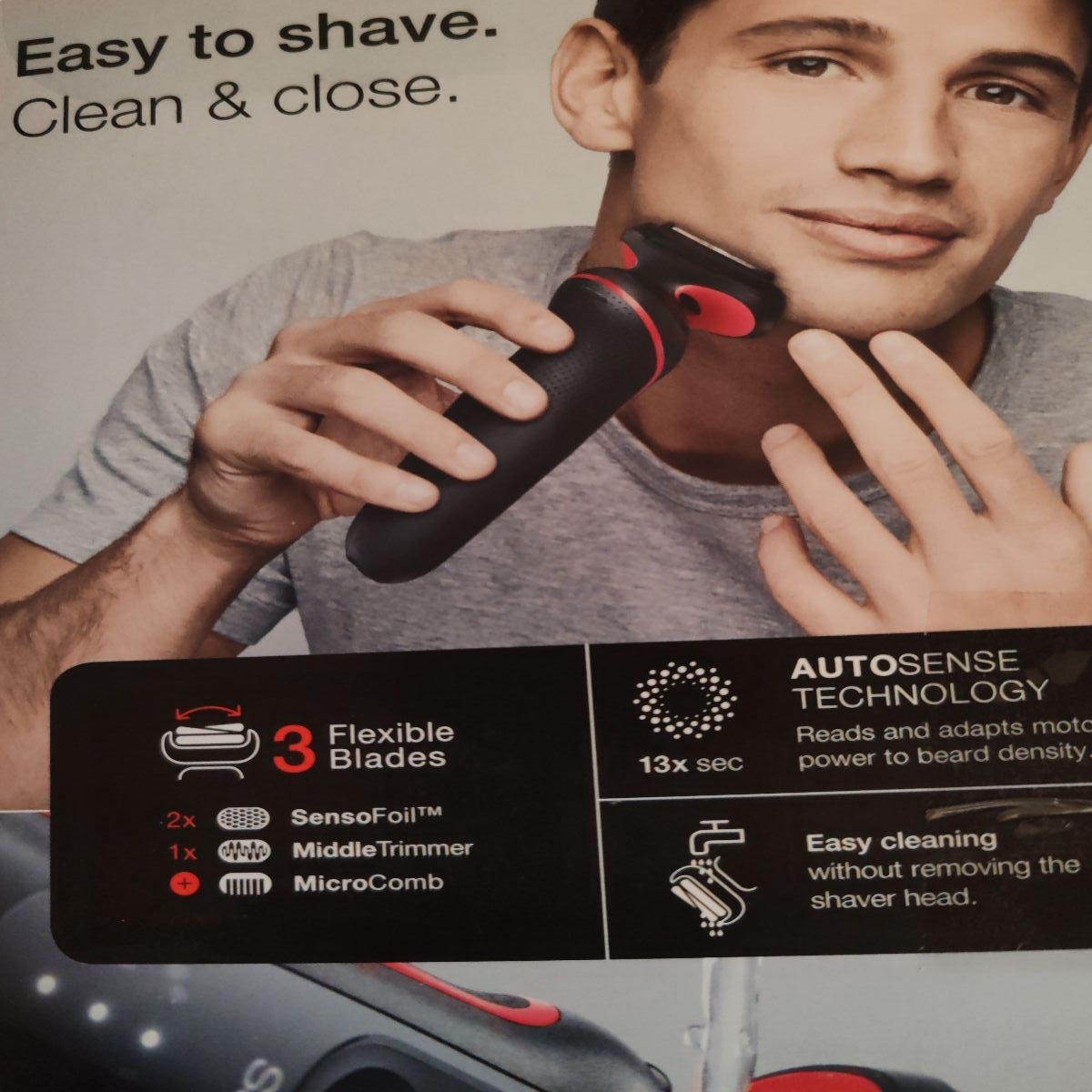 Tehnologia AutoSense unica pentru aparatele de ras Braun Tehnologia AutoSense analizeaza si adapteaza puterea la densitatea barbii, captand si taind mai multe fire de par la fiecare barbierit. |