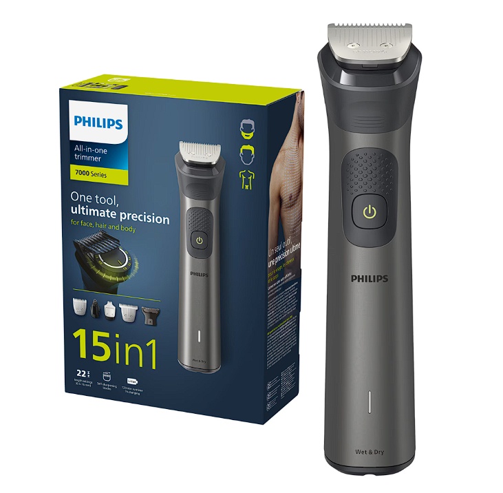 Aparat de tuns barba & parul de pe cap si corp 15in1 Philips Multigroom All in One MG7940/15, autonomie 120 min, 22 setari de lungime: 0,5-16 mm All-in-One, 3 capete trimmer specializate (detalii, nas, corp), husa, 100% waterproof, Resigilat, Grad A