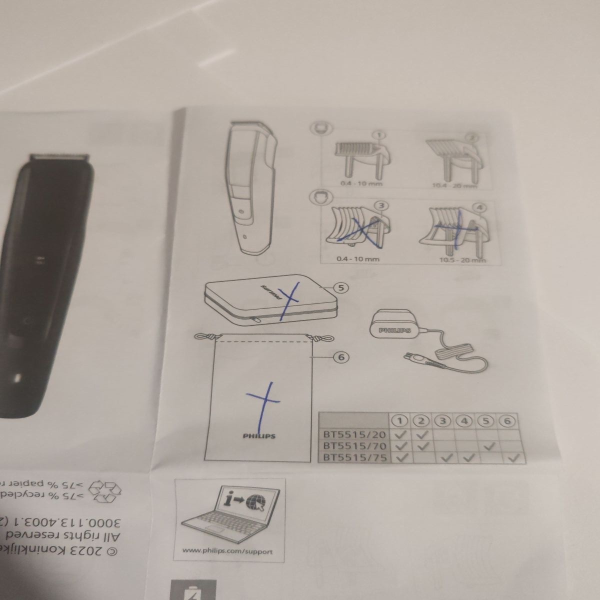 Aparat de tuns barba PHILIPS BT5515/20, Lame din otel inoxidabil 0.4-20mm, utilizare cu si fara fir, 90 min, 2 piepteni, suport de incarcare, Negru, Resigilat, Grad B
