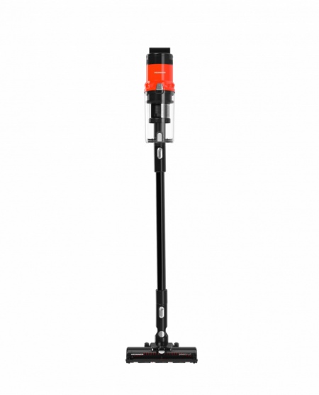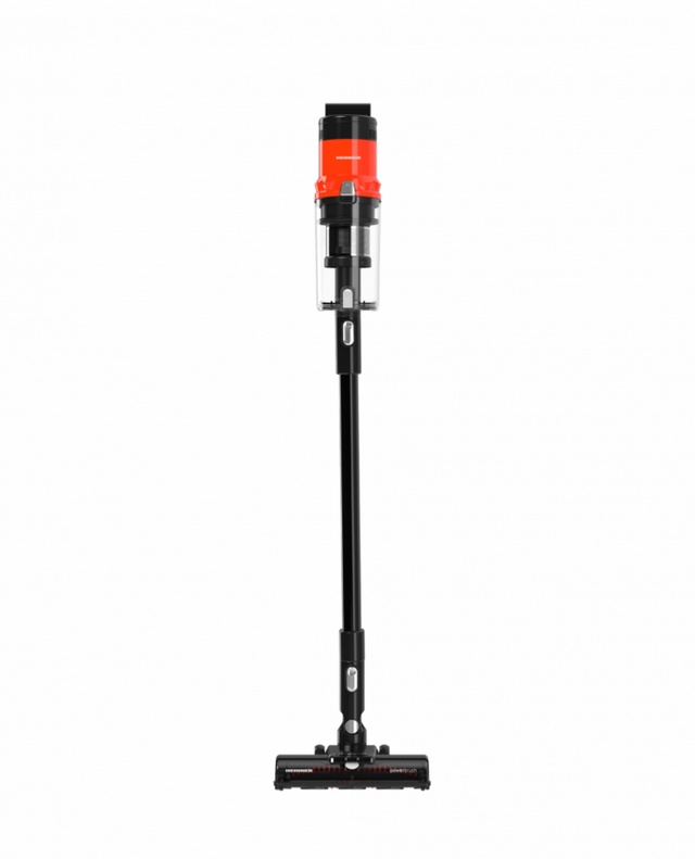 Aspirator vertical Heinner Brightfloor 200 HSVC-MBDB200OR, Sistem de filtrare multiciclonic, Motor BLDC, Putere: 200W si 3 viteze, Butoane capacitive si LED pentru indicarea nivelului bateriei, Acumulator detasabil 25.9V 2000mAh*7, Putere de absorbtie: 60W, Autonomie: 15/25/50 minute, Recipient pentru colectare praf: 500 ml, Filtru HEPA, Perie electrica cu lumini LED, Accesorii: extensie pentru spatii inguste, perie 2 IN 1, suport de montare pe perete, incarcator, Culoare: negru/rosu, Garantie: 36 luni