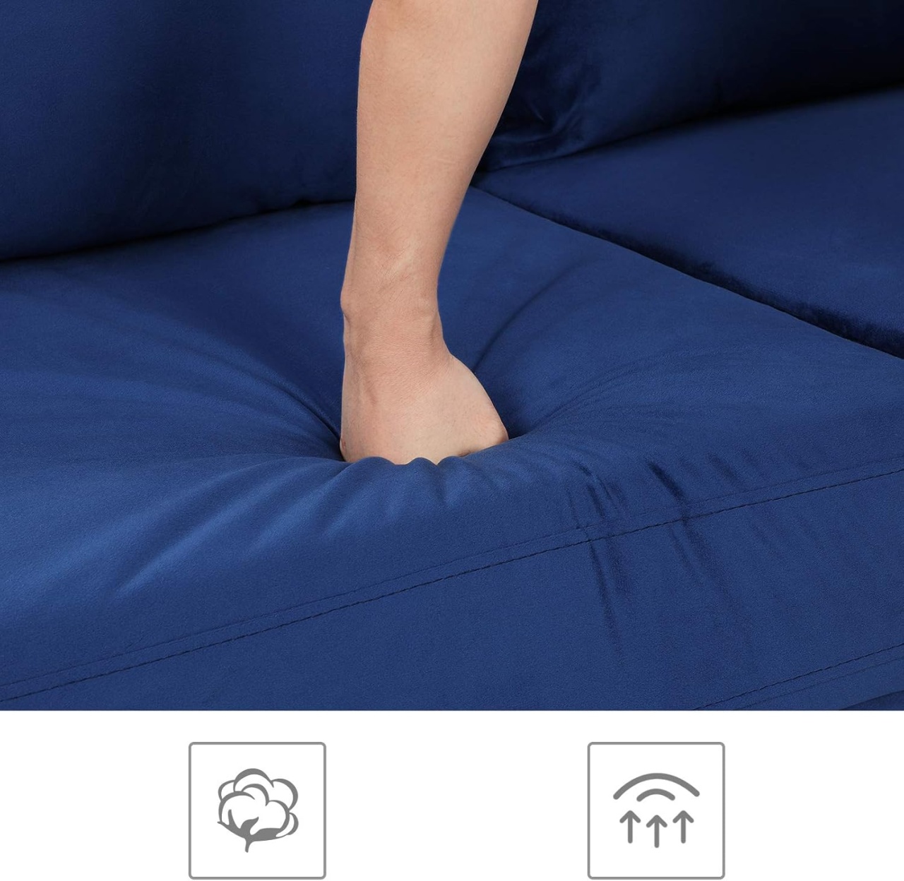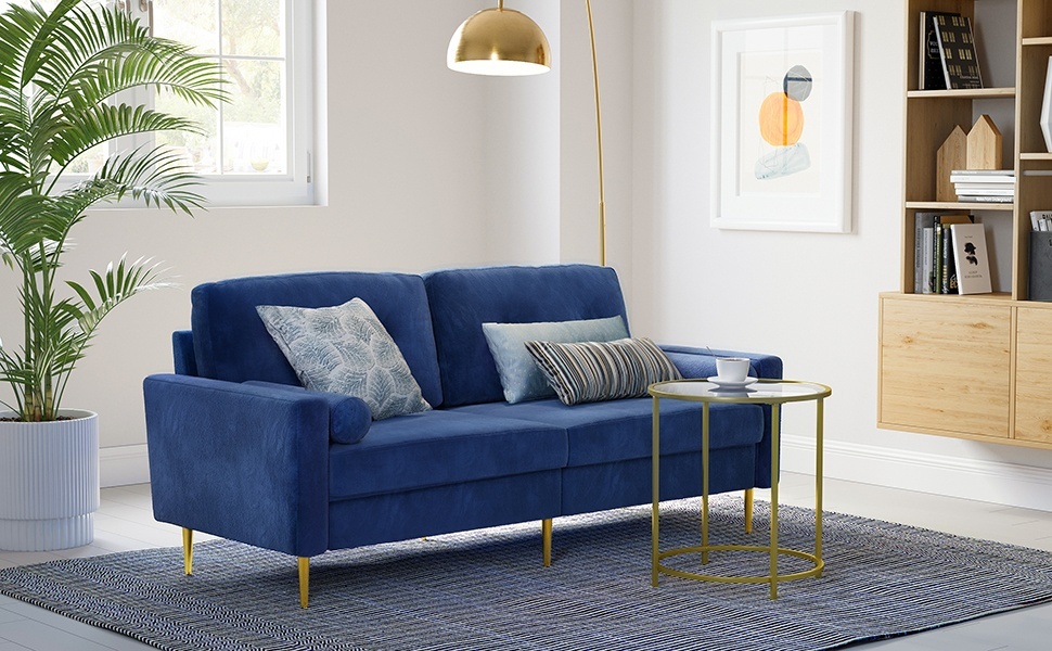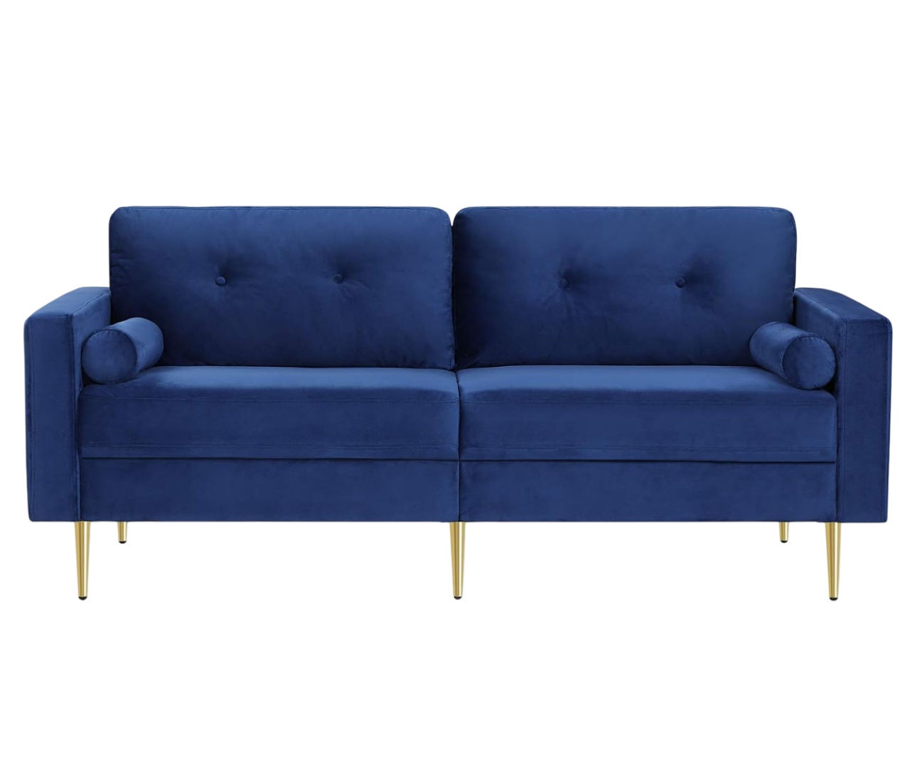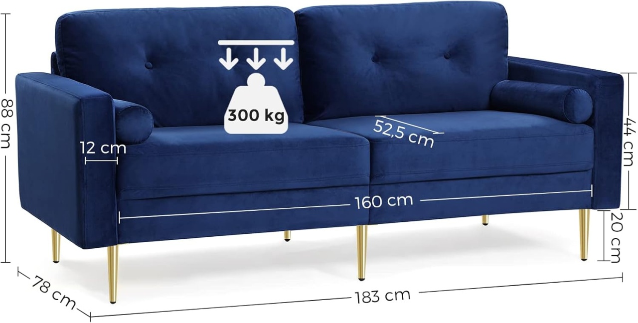 Canapea Vasagle, 3 locuri, catifea/lemn/metal, albastru inchis/auriu, 78 x 88 x 183 cm – Rafinament, confort și durabilitate pentru casa ta