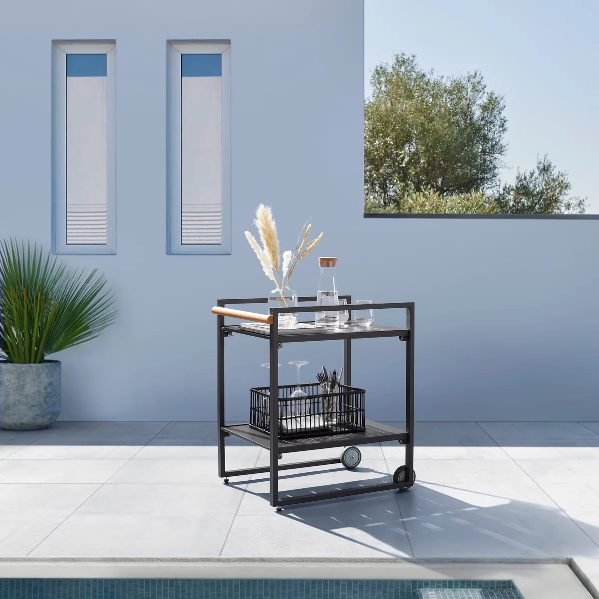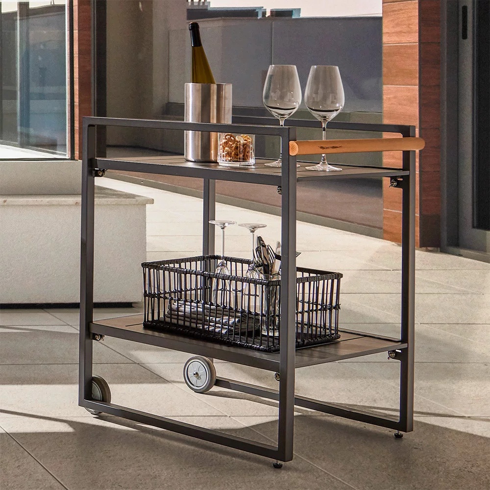 Cărucior de servire Riccardo gri închis metal/polilemn, 78/75/25 cm