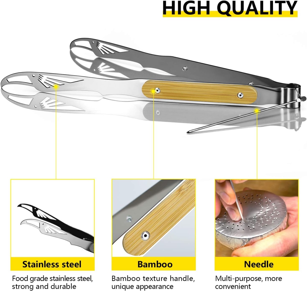 🔹 Construcție durabilă și sigură – Realizat din oțel inoxidabil de înaltă calitate, cleștele este rezistent la coroziune, temperaturi ridicate și uzură. Perfect pentru utilizare intensivă, atât la grătar cât și în bucătărie.