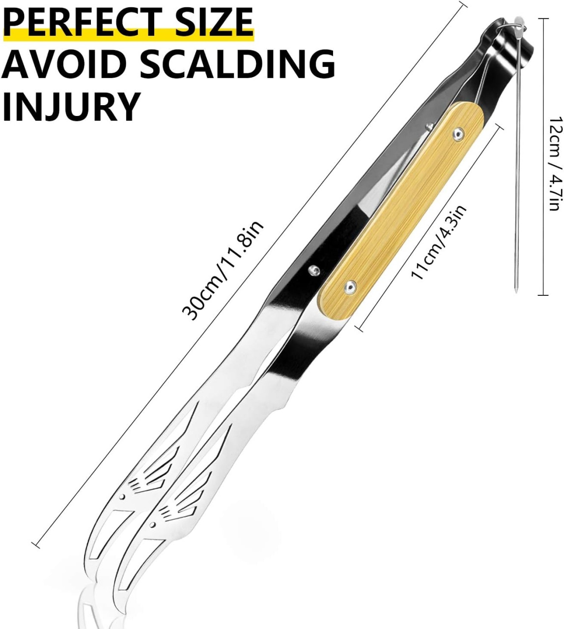 🔹 Lungime optimă – 30 cm – Ideal pentru manipularea cărnii, legumelor sau altor alimente pe grătar, fără a te expune direct la flacără sau căldură excesivă.