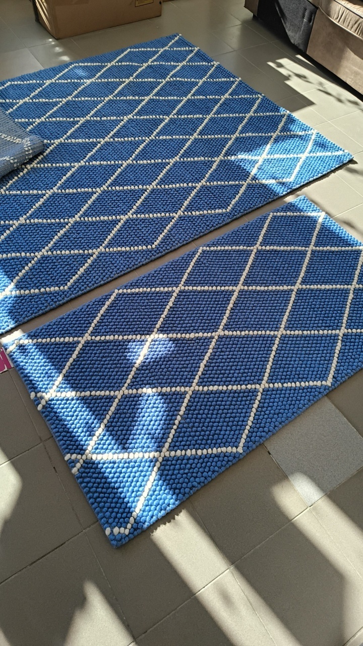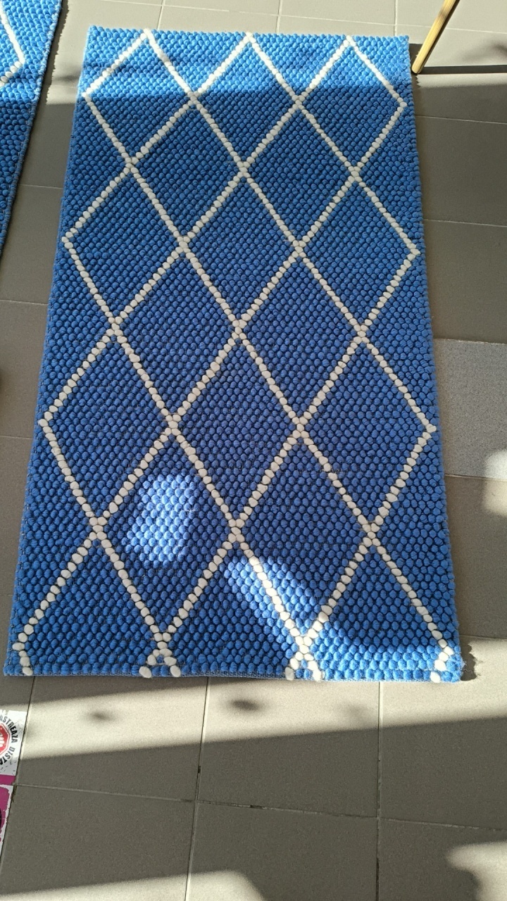 Covor din bile de lână albastru, 80 x 150 cm