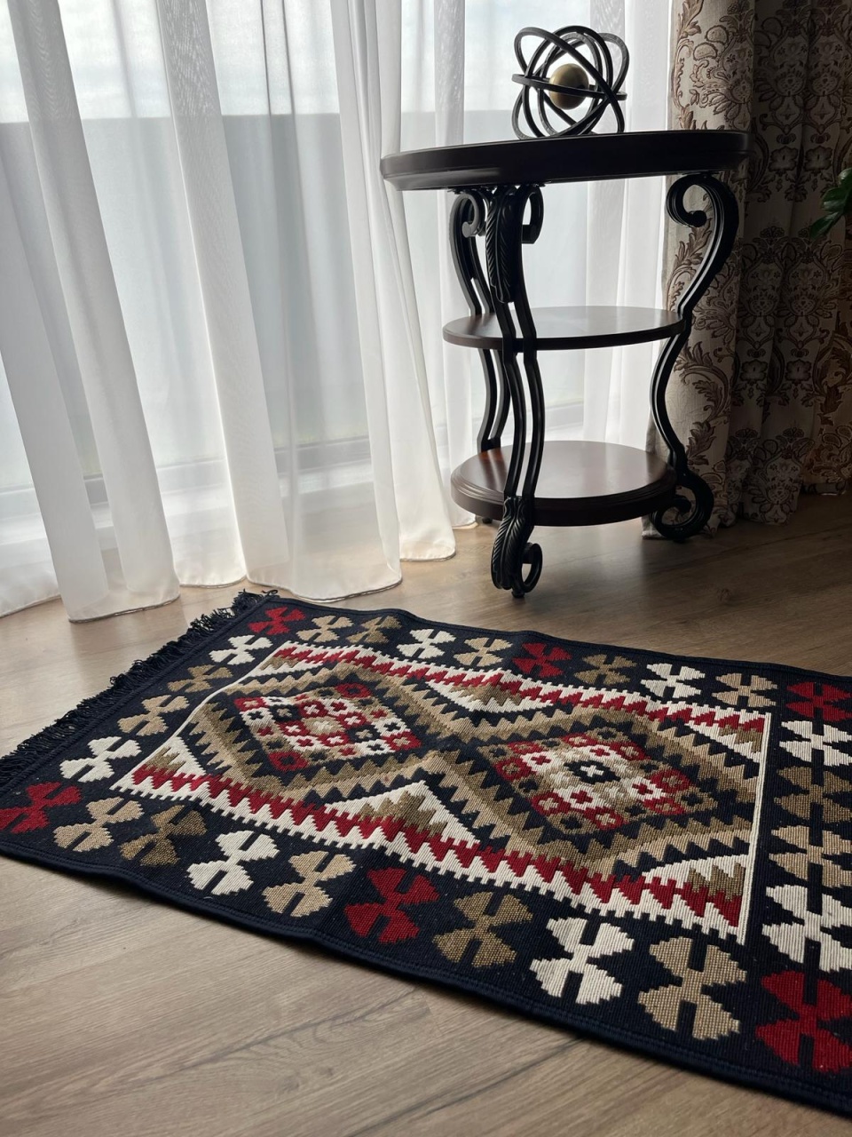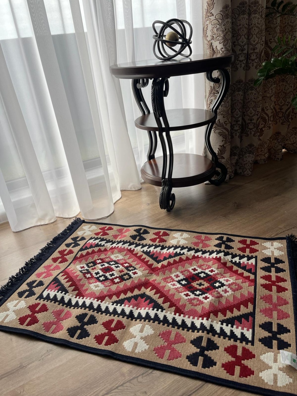 Covoarele traditionale sunt tesute dintr-un amestec de fire ce confera produsului calitati deosebite: pastreaza culorile intente, izoleaza termic si sunt potrivite pentru spatii cu trafic intens fiind usor de intretinut.