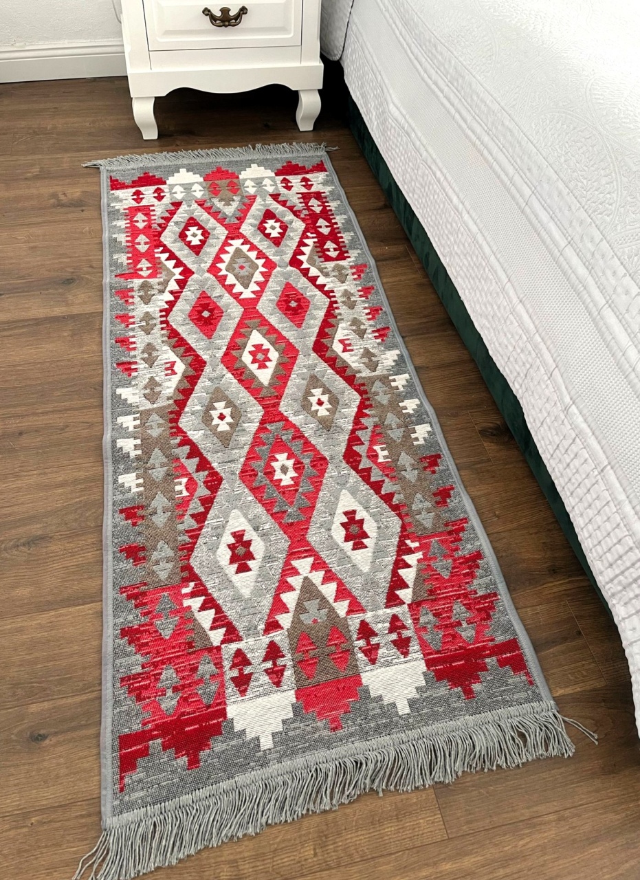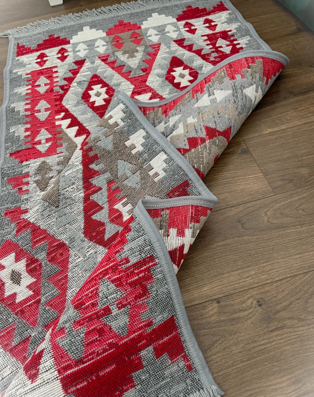 Covor traditional, cu doua fete,gri-bej, dimensiunea 60x150 cm