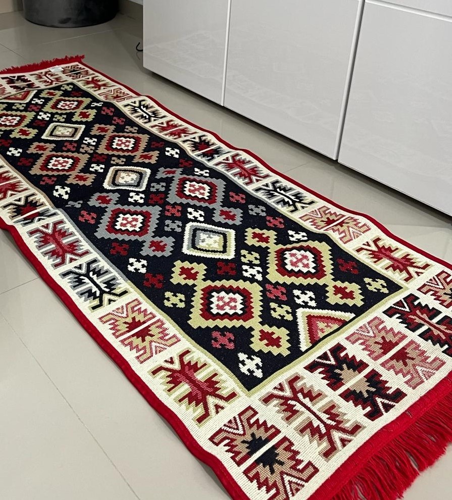 Covoarele traditionale sunt tesute dintr-un amestec de fire ce confera produsului calitati deosebite: pastreaza culorile intente, izoleaza termic si sunt potrivite pentru spatii cu trafic intens fiind usor de intretinut.