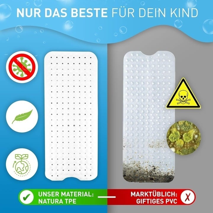 - 100% prietenos cu copiii ne vedem responsabili. Prin urmare, folosim elastomeri termoplastici Natura (TPE) de inalta calitate, prietenosi cu copiii, in loc de clorura de polivinil (PVC) toxica si daunatoare mediului.