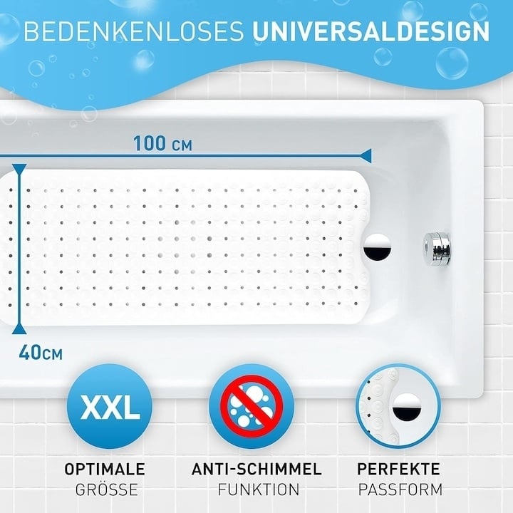- Dimensiunea perfecta: Covorasul alb antiderapant este introdus in cada este deosebit de mare si lung la 100 x 40 cm pentru a asigura o siguranta maxima antiderapante