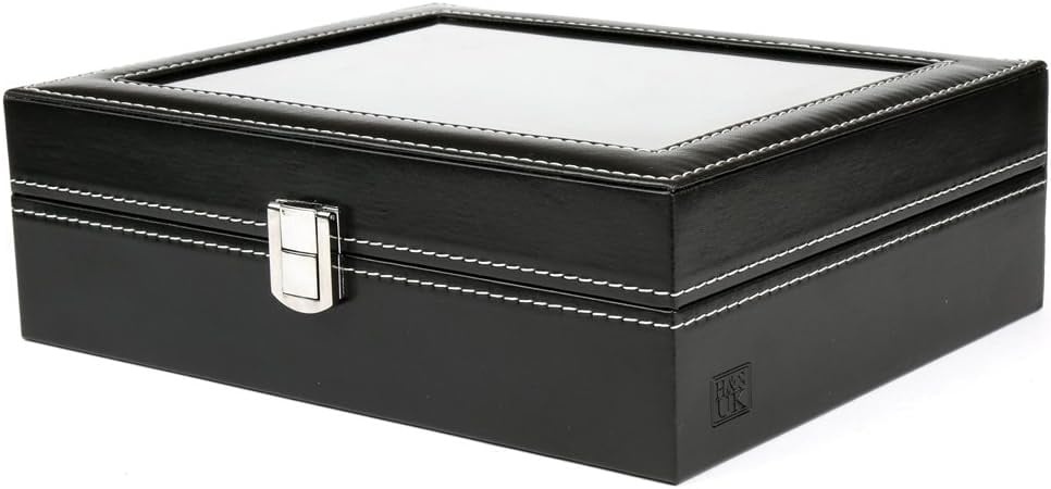 Cutie de depozitare cu capac de sticla pentru 10 ceasuri H&S, sticla/piele PU, negru, 22,5 x 7,5 x 20,5 cm, Resigilat, Grad A