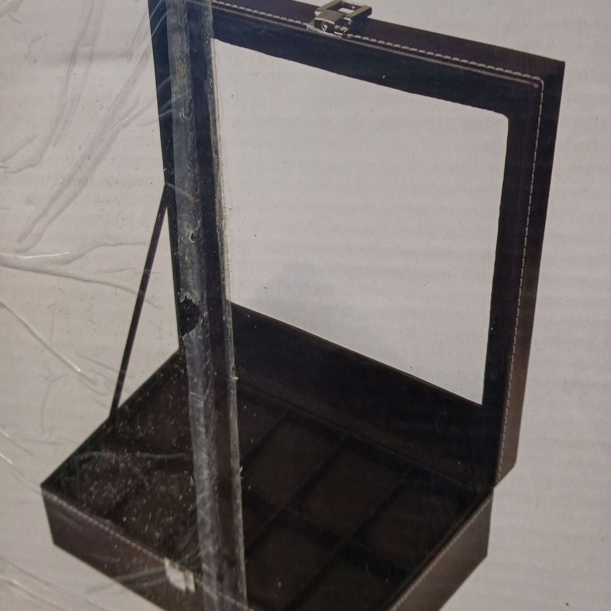 Cutie de depozitare cu capac de sticla pentru 10 ceasuri H&S, sticla/piele PU, negru, 22,5 x 7,5 x 20,5 cm, Resigilat, Grad A