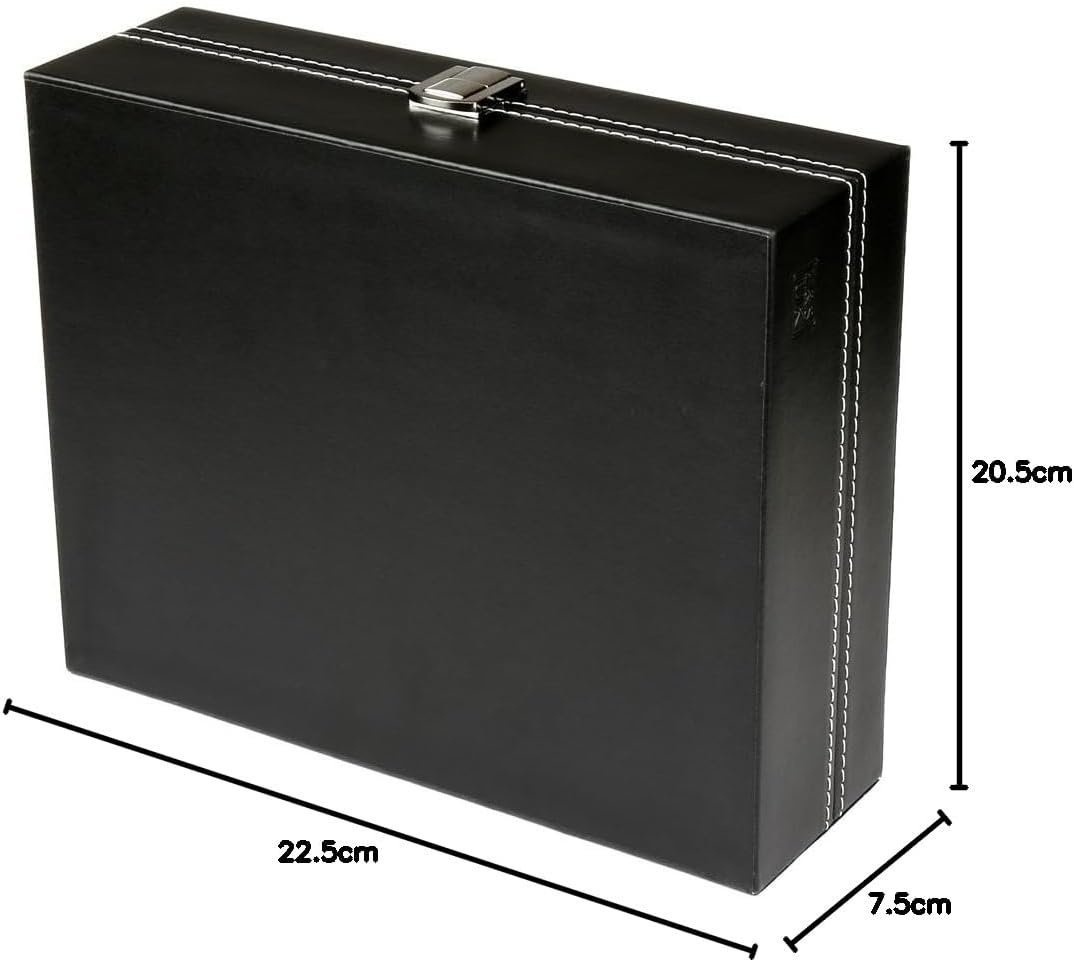 Acest organizator de ceasuri abordează această problemă prin designul său compact și eficient, făcându-l un plus practic pentru orice dulap sau garderobă. Pernele sale detașabile îl transformă într-o opțiune de depozitare multifuncțională, perfectă atât pentru cutiile de ceasuri pentru bărbați, cât și pentru femei. Caracteristicile unice ale acestei cutii de depozitare pentru ceasuri includ căptușeala din catifea de pluș și feroneria premium din oțel inoxidabil, care asigură durabilitate și protecție împotriva zgârieturilor. Finisajul din piele artificială neagră, accentuat de cusăturile albe, adaugă o notă de rafinament. Cutia include o încuietoare sigură, îmbunătățind funcționalitatea sa ca cutie de ceas pentru bărbați.