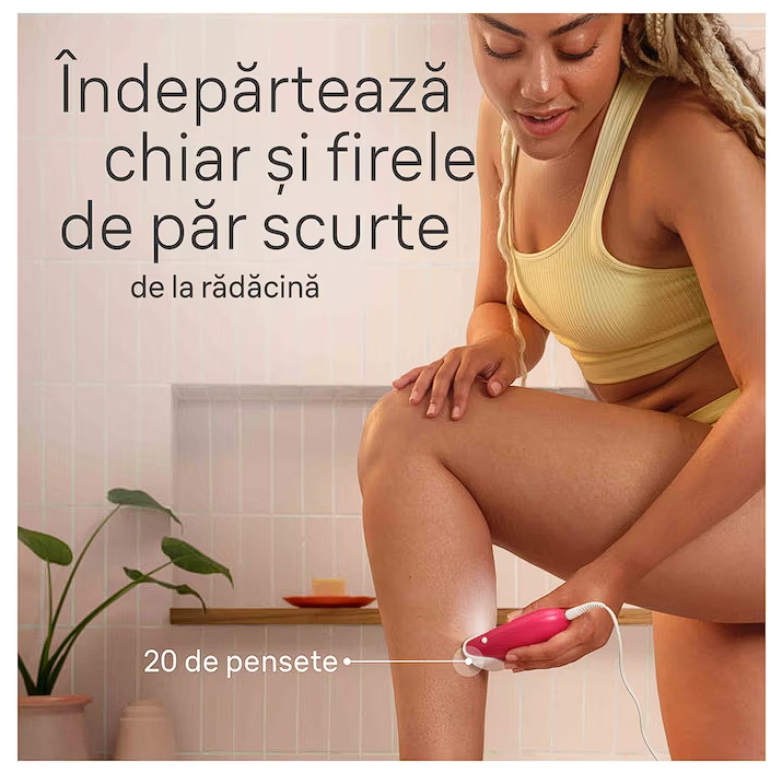 Epilatorul Braun Silk-épil 3202 indeparteaza de la radacina chiar si fierele de par scurte, cu ajutorul celor 20 de pensete.