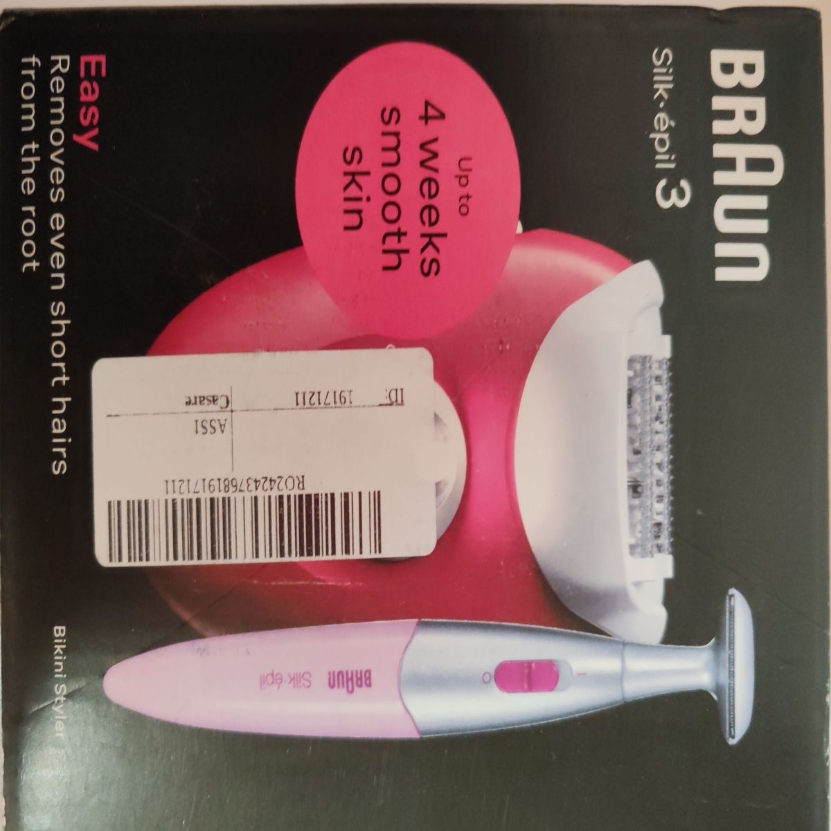 Epilator Braun Silk-épil 3 3-202, MicroGrip, Smart Light, 20 de pensete, 2 viteze, Trimmer, Fucsia, Resigilat, Grad A