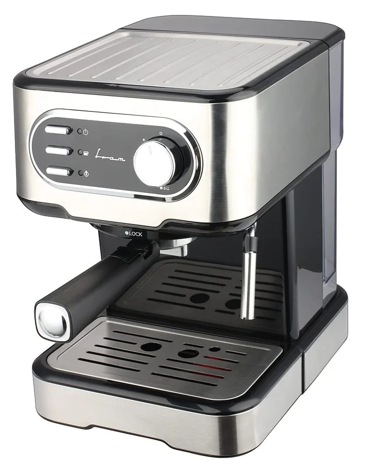 Espressor Fram FEM-850BKSS, Putere 850W, 15 bar, Rezervor apa 1.5L, Argintiu