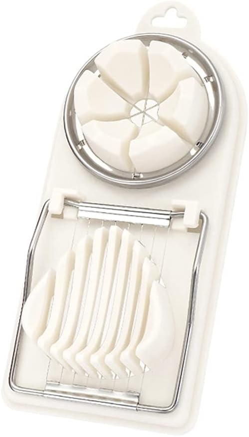 Feliator de ou ideal pentru felierea ouălor fierte, precum și căpșuni, kiwi, roșii și alte fructe și legume. Suportul inferior curbat poate fixa în mod eficient ingredientele, iar operația este convenabilă și rapidă. Feliator de ou 2 în 1, felii și pene pentru o masă gustoasă și rafinată.
