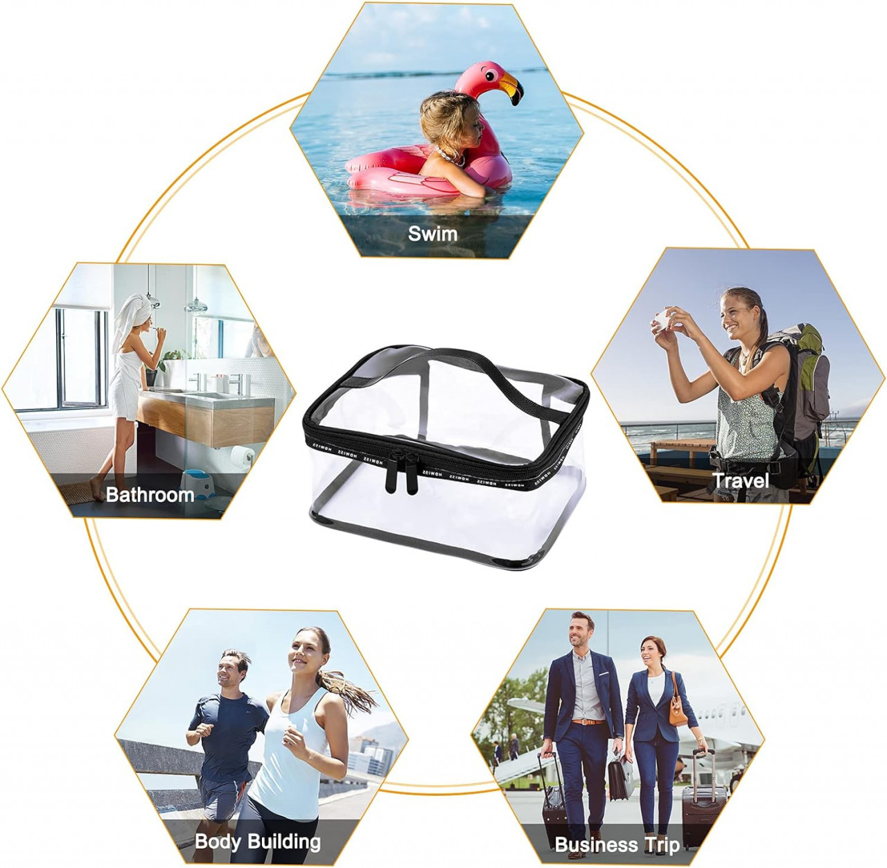 Design transparent: toate elementele sunt clare dintr-o privire. Este mai ușor pentru tine să găsești ceea ce ai nevoie. Geanta cosmetică transparentă vă poate ajuta, de asemenea, să treceți rapid de securitatea aeroportului.