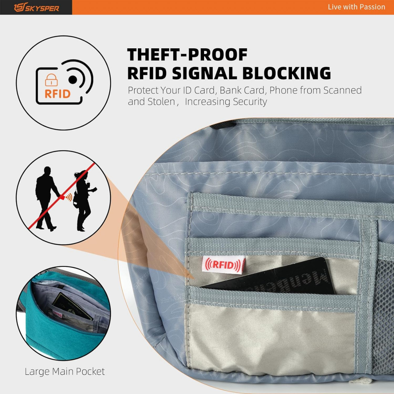 Curea de talie reglabilă: cu pachetul de talie SKYSPER Running, puteți ajusta cu ușurință lungimea perfectă pentru o potrivire perfectă cu corpul dvs. Acest pachet elegant de șold vine cu o mufă pentru căști în față, pe care o puteți folosi și ca mufă de încărcare pentru a asculta muzică și a vă încărca telefonul oricând și oriunde.