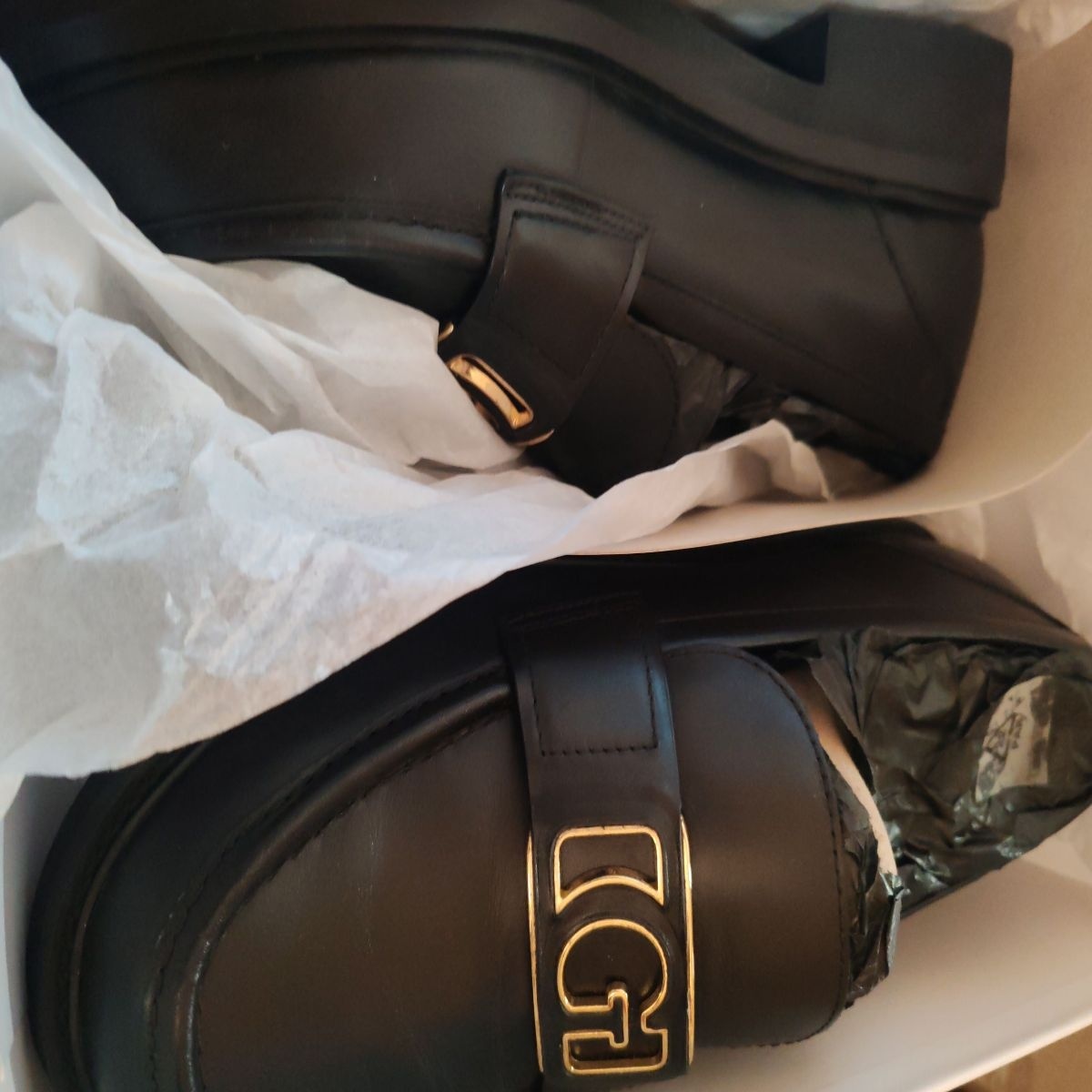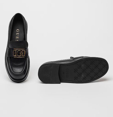 GUESS, Pantofi loafer din piele cu logo, Negru, 37.5, Resigilat, Grad A