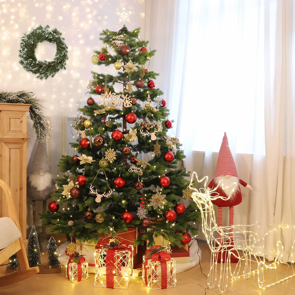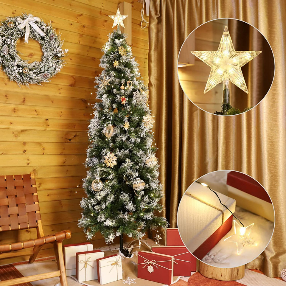 - LED-uri eficiente: 210 LED-uri pe 2 m și 130 LED-uri pe 1,5 m asigură o iluminare constantă și de înaltă calitate, oferind o lumină plăcută, caldă (2700 K), perfectă pentru Crăciun și alte ocazii speciale.