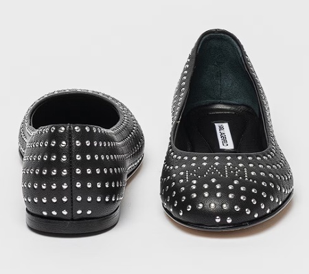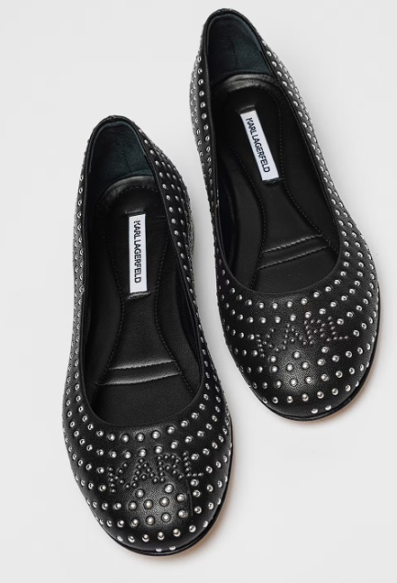 Acești balerini de la brandul Karl Lagerfeld, în nuanţele negru/argintiu — combină eleganţa unei siluete clasice cu detalii decorative, oferind un look sofisticat pentru ținutele casual‑chic.