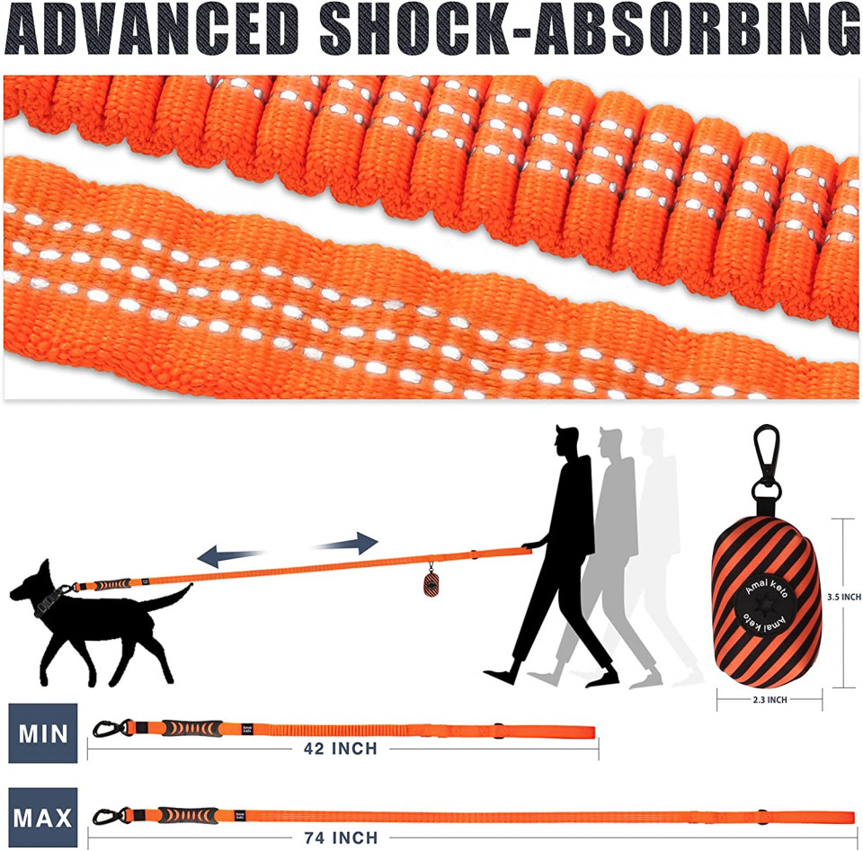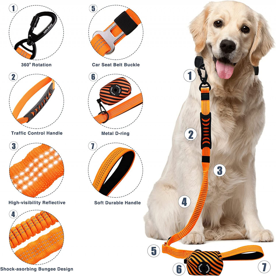 Design elastic: cu design elastic rezistent la șocuri, această centură pentru câine este perfectă pentru control și amortizare, reduce tracțiunea dintre tine și câinele tău și oferă câinelui tău mai mult spațiu și libertate.