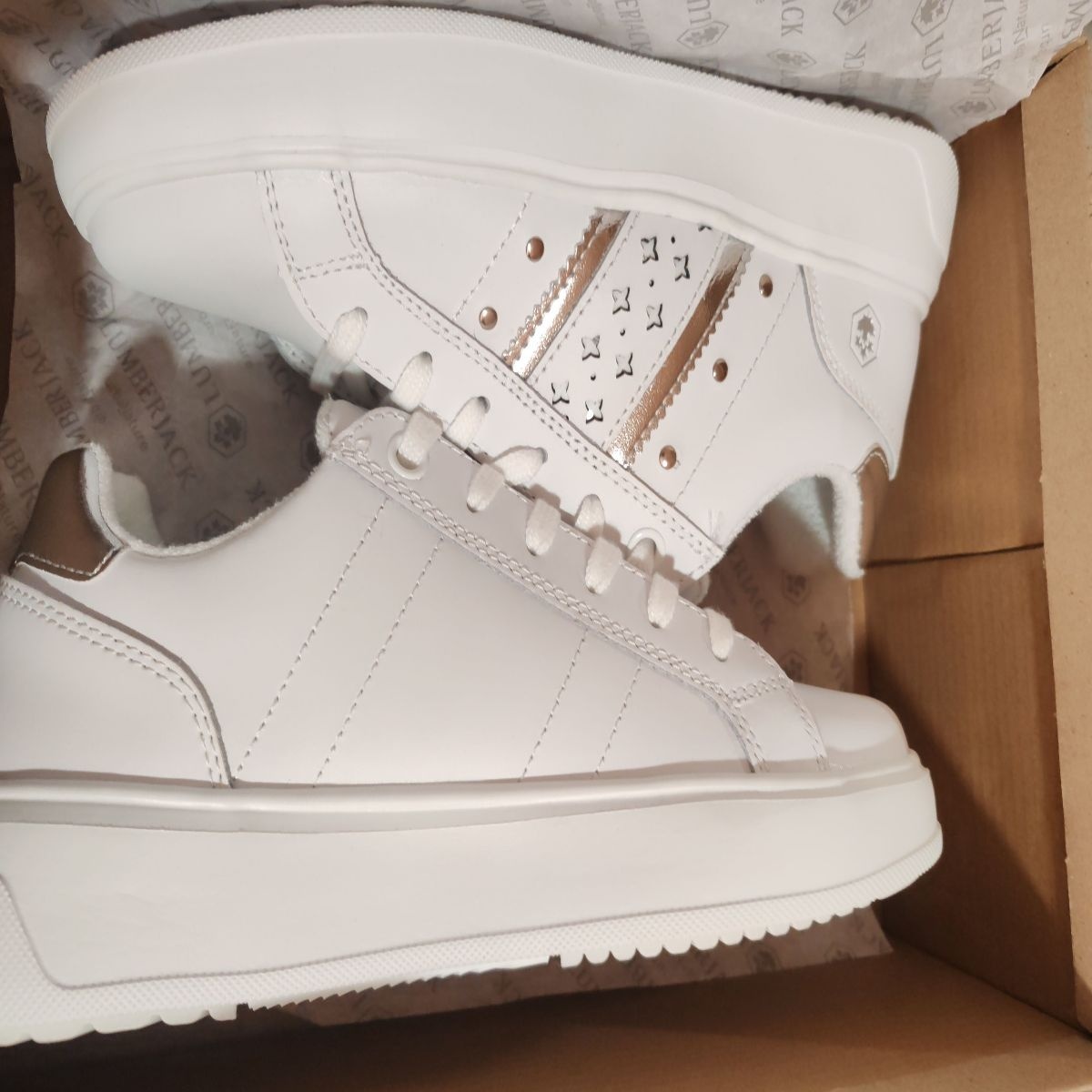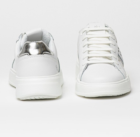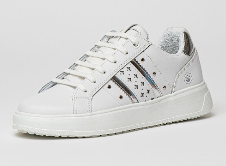 Lumberjack, Pantofi sport de piele ecologica cu detalii perforate Pria, Alb, Argintiu, 38, Resigilat, Grad A