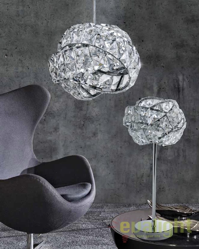 Această lampă șic și elegantă, realizată din cristale de înaltă calitate, va adăuga strălucire interiorului tău. Becurile mici și elegante strălucesc prin cristale, creând un efect de prismă sofisticat. Această lampă strălucitoare va atrage ochiul interiorului tău.