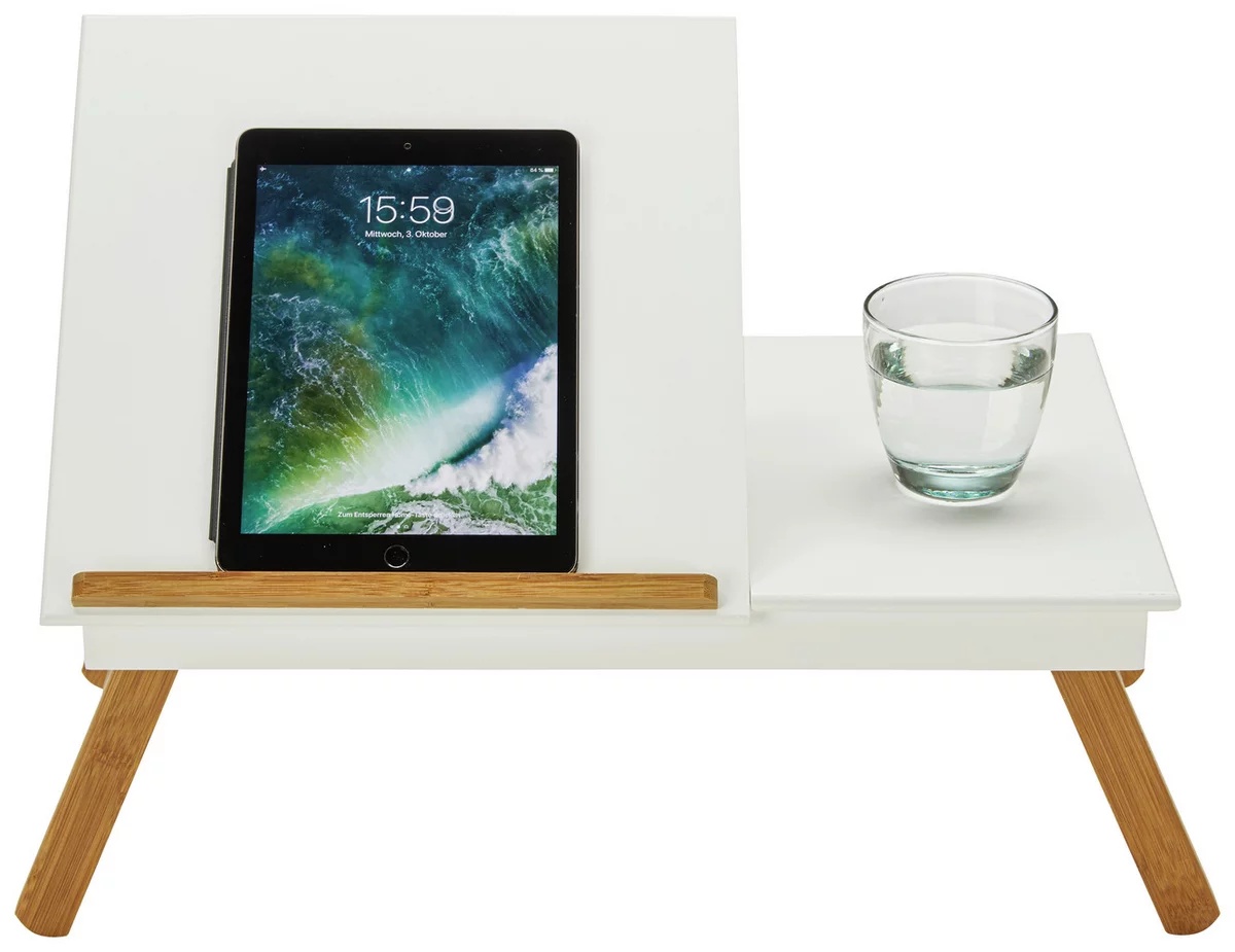 Masă pentru laptop în culori albe/naturale, 53/20,5-43/33 cm