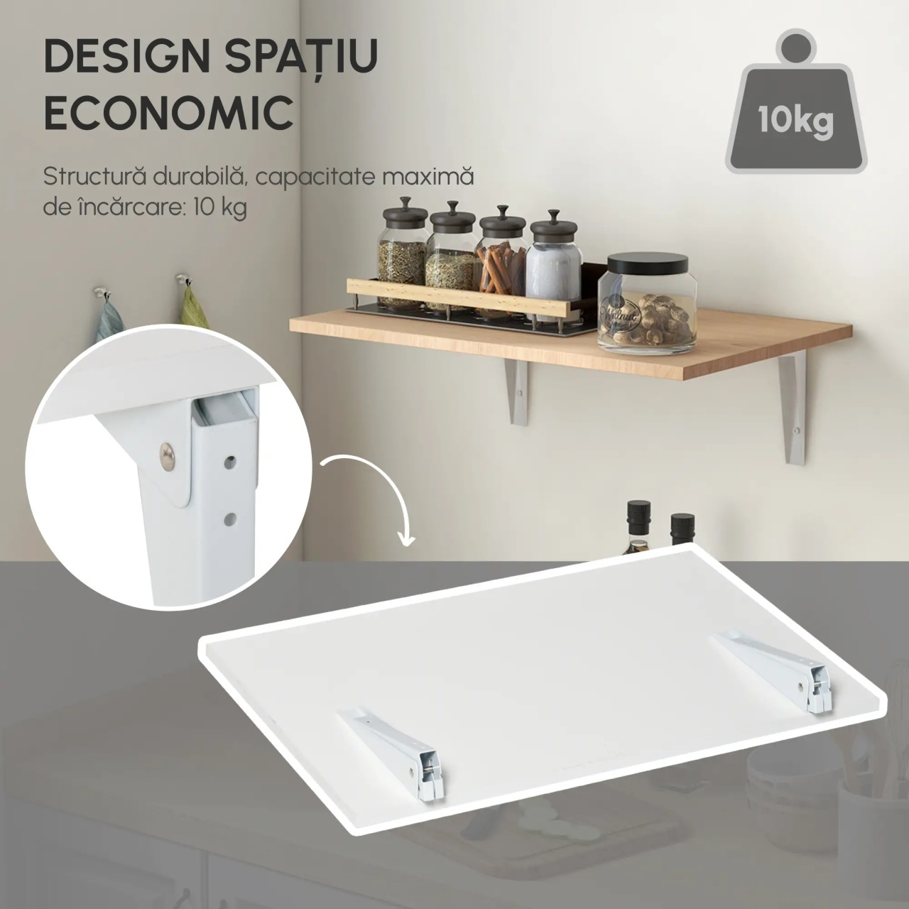 Masuta de perete rabatabila, MDF/metal, alb, 60 x 40 x 20 cm, Resigilat, Grad A