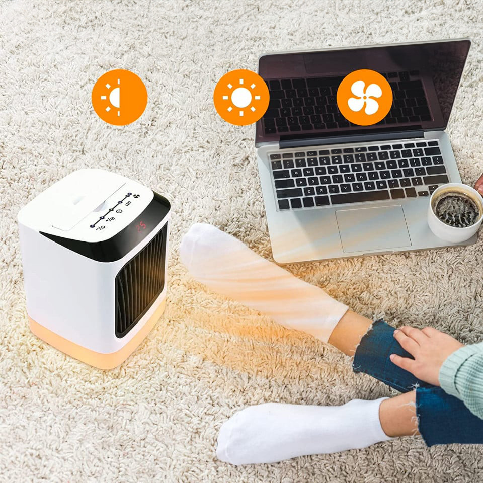 Încălzitor multifuncțional 2-în-1: Acest încălzitor nu numai că are un mod de încălzire, dar are și un mod natural de vânt. Iti poate aduce racoare vara si te poate incalzi chiar si iarna. Există două niveluri de viteză scăzută / mare a vântului pe care le puteți regla, puterea de căldură este de 600W / 800W pentru a satisface nevoile zilnice.