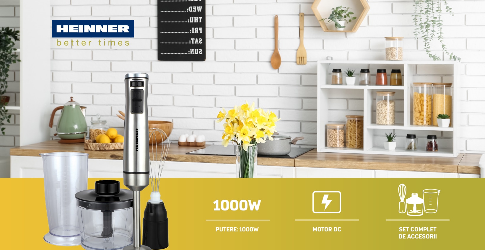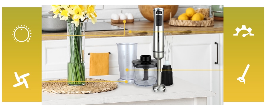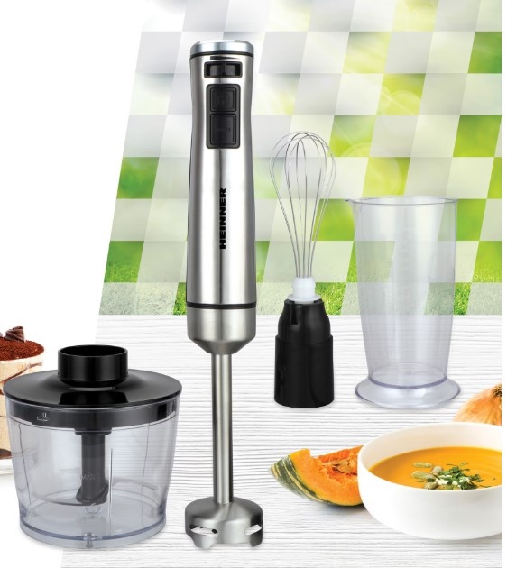 Mixer vertical Heinner HHB-DC1000SSBK , 1000w, viteza variabila + turbo, tel, Tocator, Negru cu insertii inox