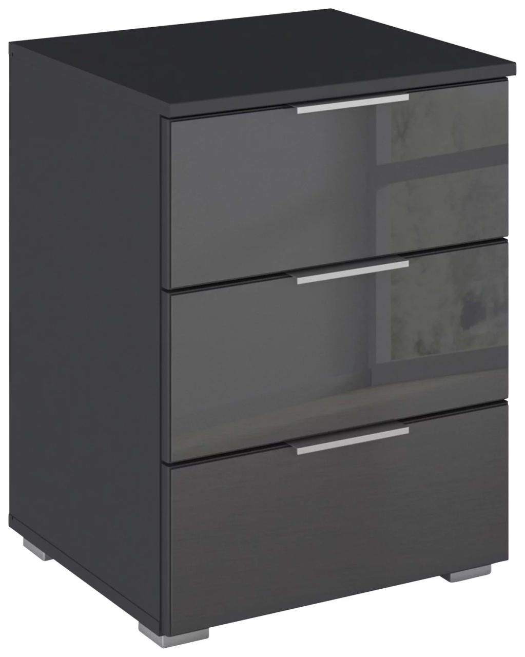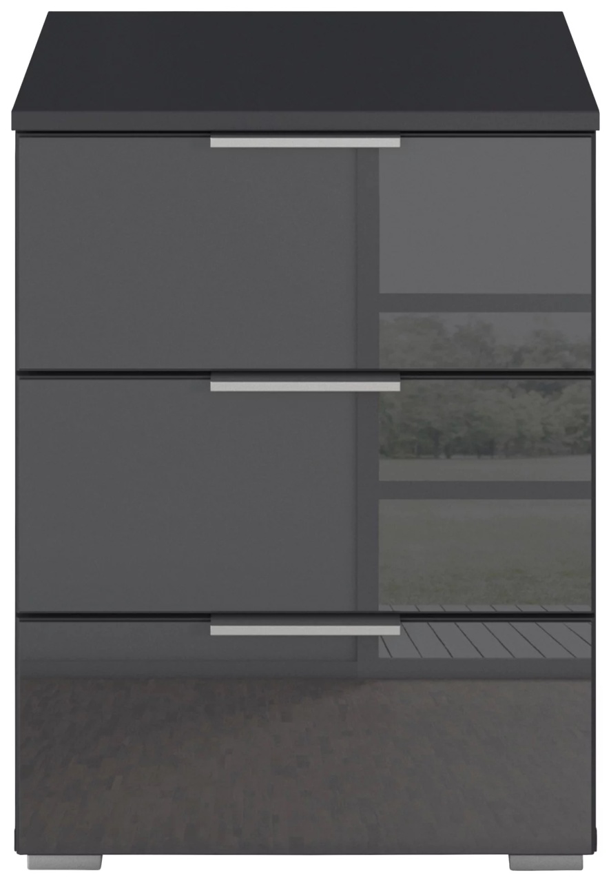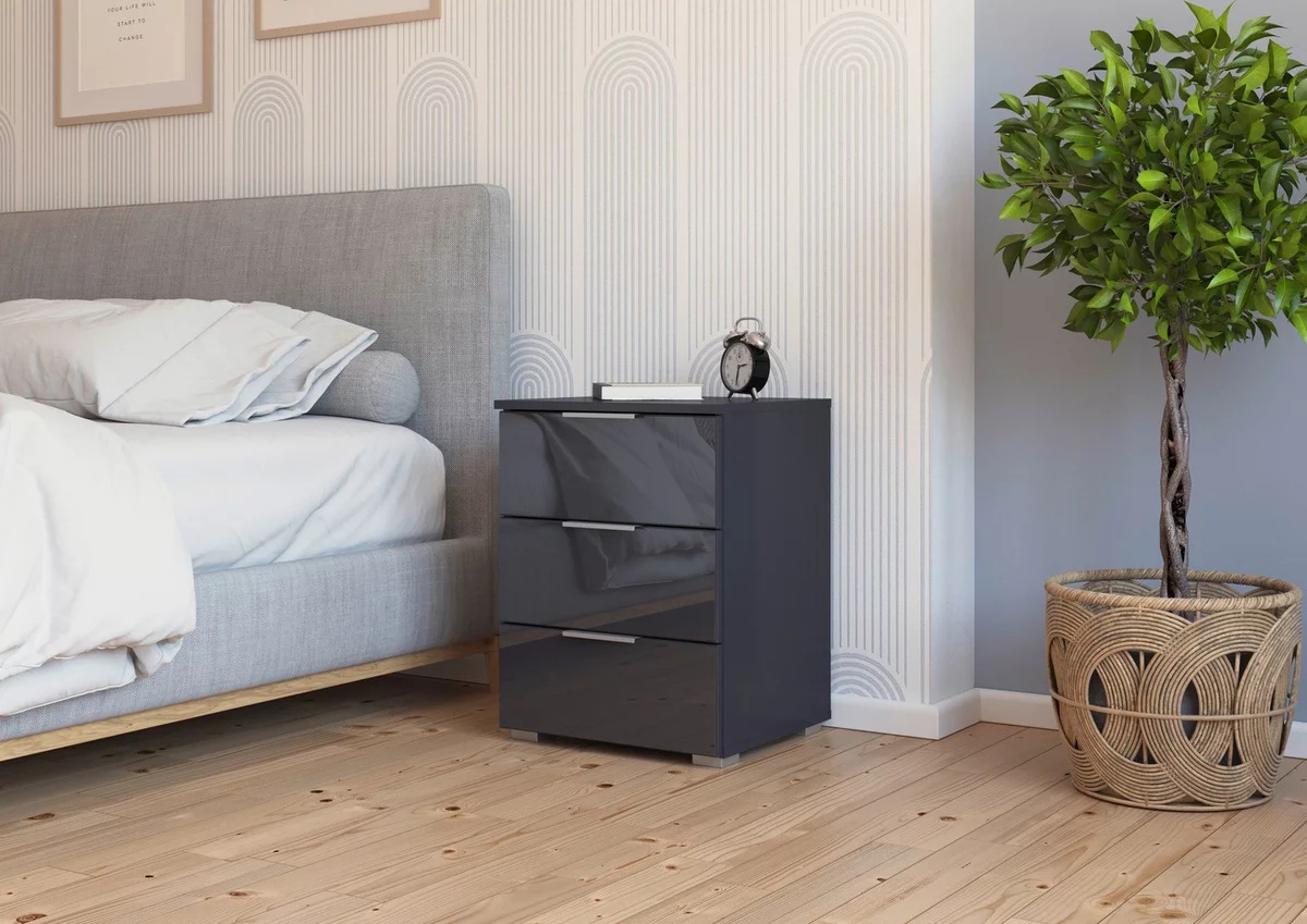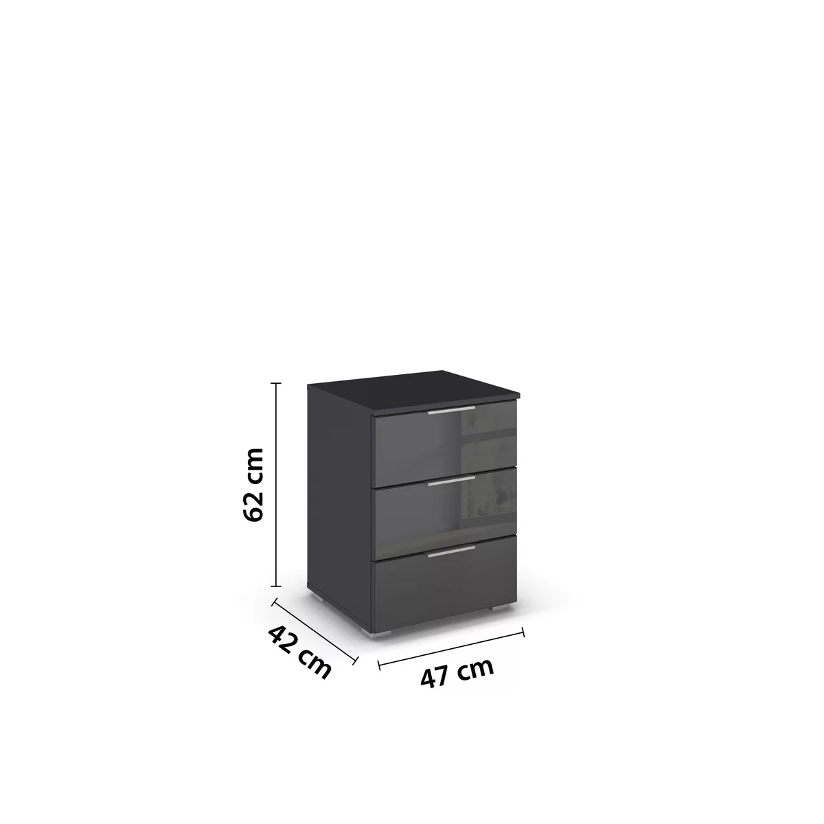 Noptiera Mars, negru lucios, 3 sertare, 47x42x62cm