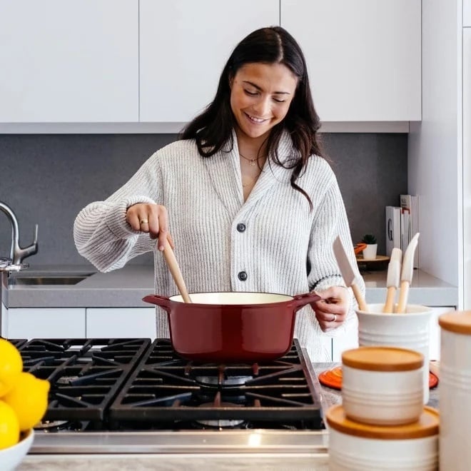 Poate fi folosit pe toate tipurile de plite, inclusiv pe inducție. Atât oala, cât și capacul sunt sigure pentru cuptor până la 260°C , în timp ce finisajul emailat împiedică lipirea alimentelor și facilitează curățarea.