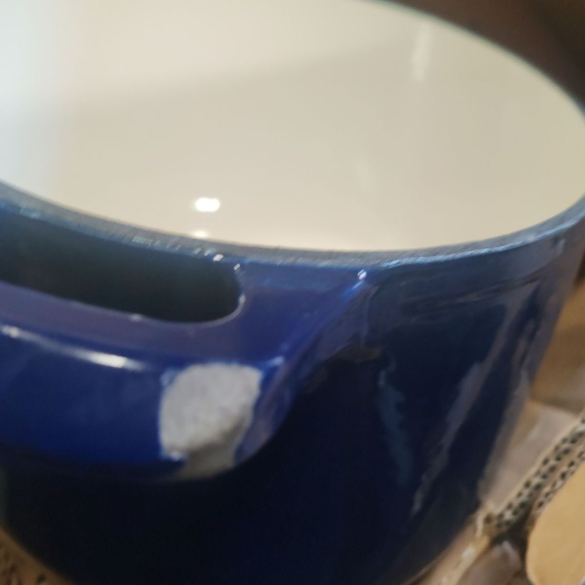 Oala fonta emailata Navaris, albastru, cu capac, pentru cuptor, plita, gaz, electric, cu inductie, cu infrarosu, 24 cm, 3.5 l, Resigilat, Grad B