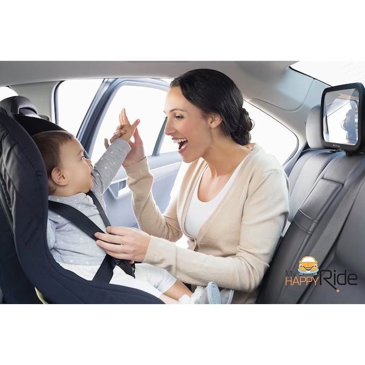 Oglinda auto supraveghere bebe, MyHappyRide, fixare tetiera, suport anti-alunecare, negru, Resigilat, Grad A