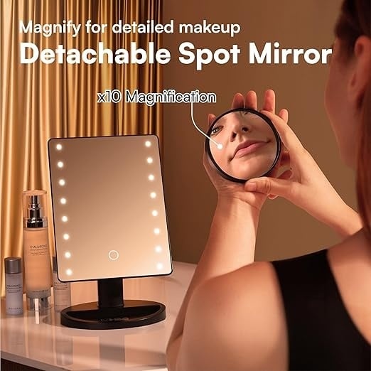 Oglinda detașabilă de 10x vă permite să vedeți fiecare detaliu, făcând-o perfectă pentru sarcini precise de machiaj și îngrijire. Păstrați oglinda de mărire pe oglinda principală de machiaj sau pur și simplu atașați-o atunci când este necesar.