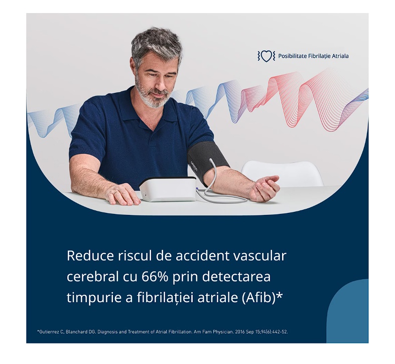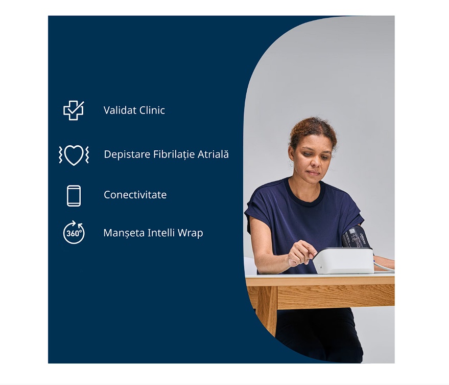Tensiometru electronic de brat cu detectare fibrilatie atriala, conectivitate si manseta inteligenta intelli wrap