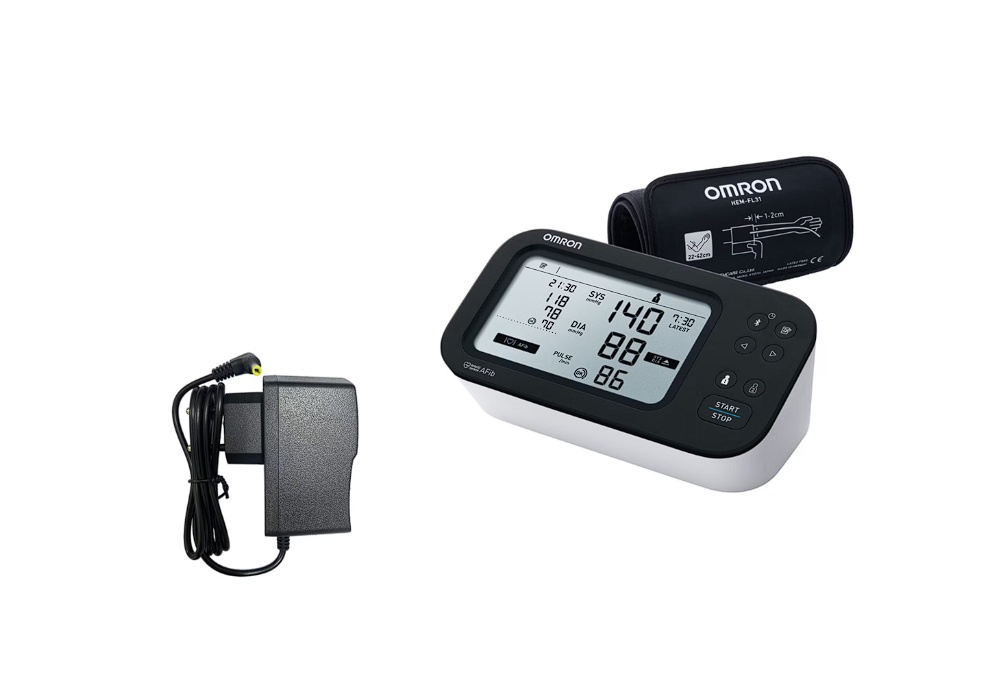 Pachet Tensiometru de brat automat OMRON M7 IT AFib, Tehnologie Intellisense, Adaptor AC original Omron, Alb, Resigilat, Grad A