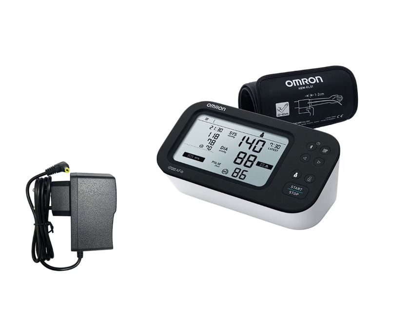 Pachet Tensiometru de brat automat OMRON M7 IT AFib, Tehnologie Intellisense, Adaptor AC original Omron, Alb, Resigilat, Grad A