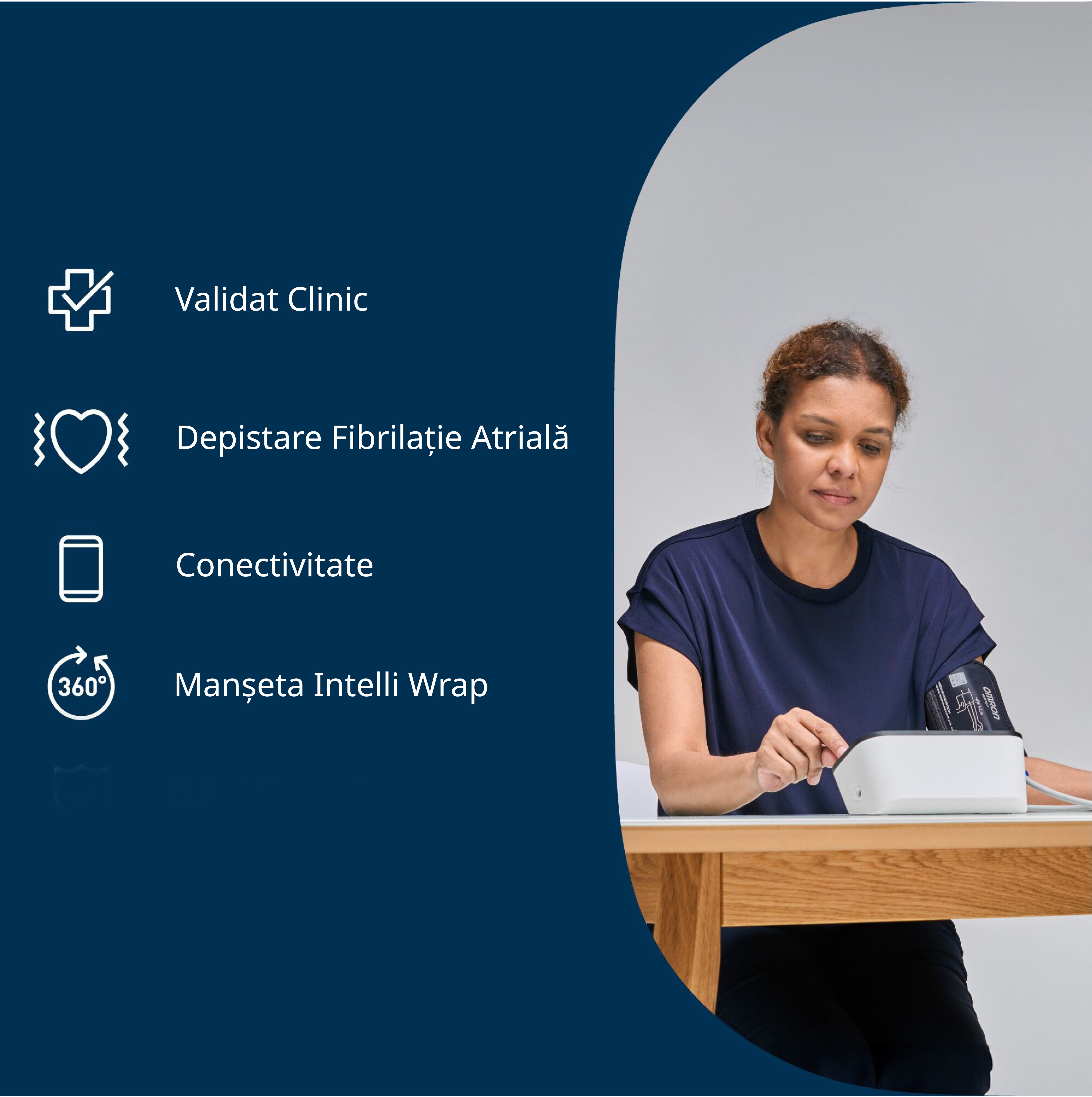Tensiometru electronic de brat cu detectare fibrilatie atriala, conectivitate si manseta inteligenta intelli wrap