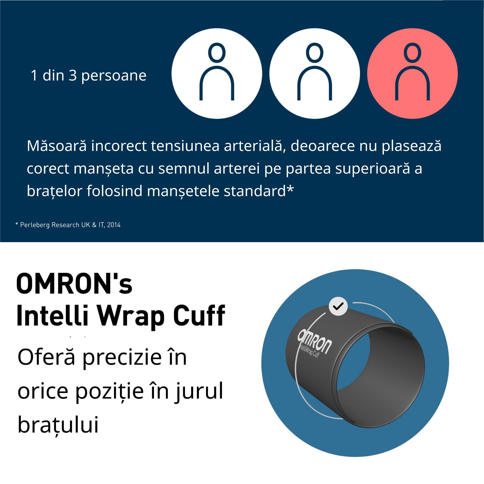 Manseta Intelli Wrap de la OMRON citeste cu exactitate in orice pozitie pe bratul dvs. superior.