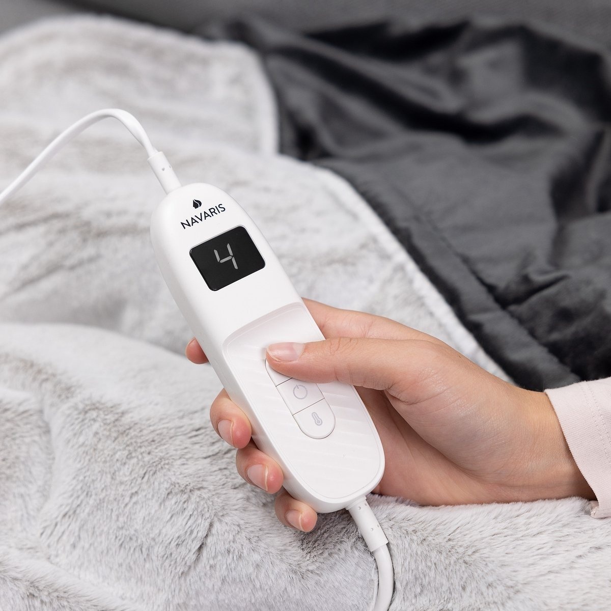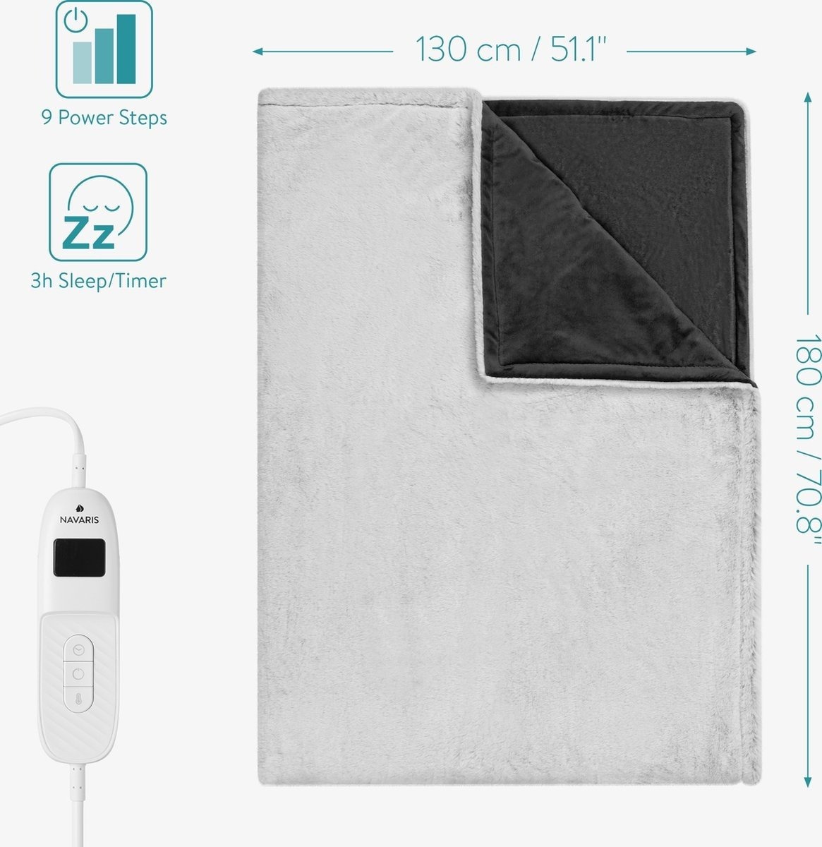 Patura termica electrica Navaris, gri, pufoasa, lavabila, 9 nivele de caldura, oprire automata, 180x130 cm, Resigilat, Grad A