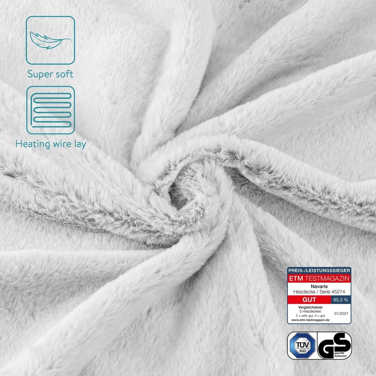 Pătură de încălzire Navaris XXL pentru 2 persoane - Pătură electrică cu 9 setări și cronometru - 180 x 130 cm - Catifelat moale - Lavabil - Gri