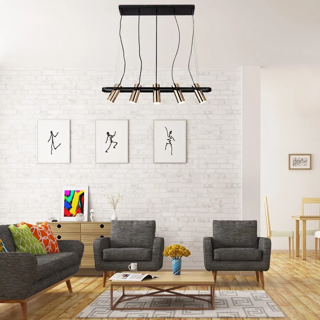 Suspensie LED Raven – Stil clasic, lumină caldă și design elegant Această suspensie din familia Raven este ideală pentru spații interioare precum bucătării, restaurante sau camere de hotel. Cu un design clasic în finisaj auriunegru, adaugă rafinament oricărui ambient. Specificații tehnice: Consum total: 25 W Flux luminos: 2000 lm Temperatură de culoare: 3000 K (lumină caldă) Bec inclus: LED integrat Material: metal Culoare: auriu/negru Dimensiuni: lungime 820 mm, înălțime 1200 mm Montaj: aplicat pe tavan Destinație: interior (bucătărie, hotel/restaurant) Stil: clasic Tensiune alimentare: 230 V Grad de protecție: IP20 Această piesă oferă o iluminare eficientă și caldă, potrivită pentru spații cu atmosferă primitoare, combinând funcționalitatea LED-ului modern cu estetica clasică.