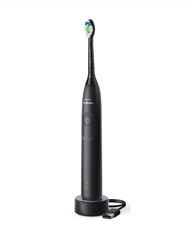 Periuta de dinti electrica Philips Sonicare HX7101/01, 62.000 miscari/minut, autonomie 21 zile, 1 mod periere, 2 intensitati, senzor presiune integrat, functia BrushSync, inclus capat de periere Otimal White, negru, Resigilat, Grad A
